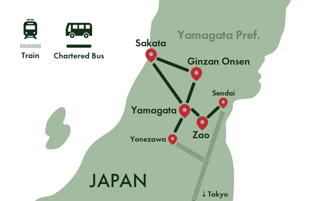 Embark on a captivating 5-day journey through Yamagata. Witness Zao's panoramic views and milky hot springs, savor Sakata's coastal delights, and indulge in a Maiko experience. Discover the picturesque Ginzan Onsen with its historical buildings, explore the stunning landscapes of Yamadera, and enjoy winery tasting in Yamagata Prefecture, a major wine-producing region in Japan.